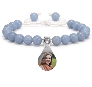 Custom Photo Bracelet Personalized Blue Crystal Beaded Adjustable Rope Charm Jewelry Fashion Couple Friendship Gift Romantic